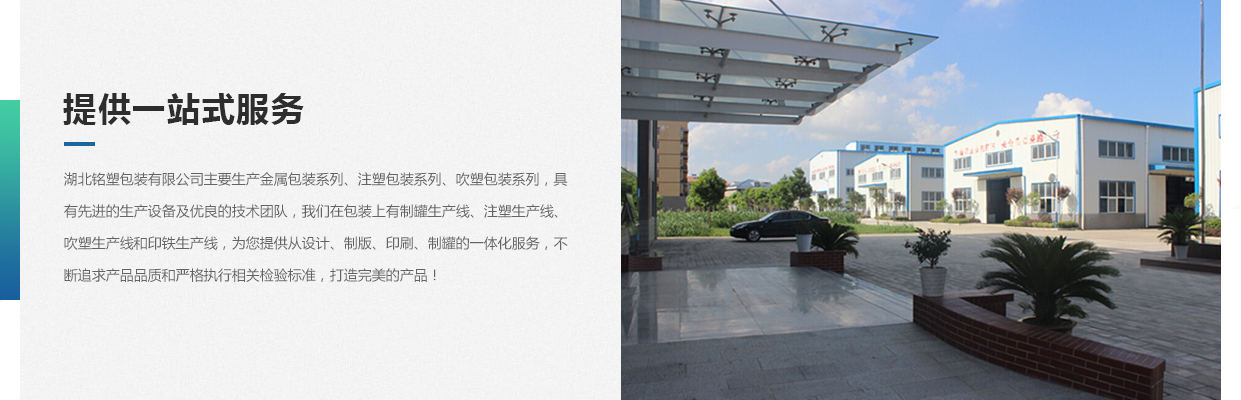 湖北銘塑包裝有限公司一家集研發(fā)、生產(chǎn)、銷售于一體的較優(yōu)秀民營企業(yè),技術(shù)力量雄厚,產(chǎn)品質(zhì)量可靠。位于交通暢順,百業(yè)興旺、經(jīng)濟(jì)富裕、政策開放的孝感開發(fā)區(qū)域。我們企業(yè)的營銷戰(zhàn)略是以建筑為土壤,以產(chǎn)品為種子,以質(zhì)量為肥料,讓綠色鋪滿全球。憑借多年來的行業(yè)經(jīng)驗(yàn),公司不斷進(jìn)行創(chuàng)新和研發(fā),為市場提供更廣泛的產(chǎn)品應(yīng)用領(lǐng)域和更好環(huán)保節(jié)能產(chǎn)品,為國家能源環(huán)保戰(zhàn)略和可持續(xù)發(fā)展戰(zhàn)略作出應(yīng)有的貢獻(xiàn)。 湖北銘塑包裝有限公司主要生產(chǎn)金屬包裝系列、注塑包裝系列、吹塑包裝系列,具有先進(jìn)的生產(chǎn)設(shè)備及優(yōu)良的技術(shù)團(tuán)隊(duì),我們?cè)诎b上有制罐生產(chǎn)線、注塑生產(chǎn)線、吹塑生產(chǎn)線和印鐵生產(chǎn)線,為您提供從設(shè)計(jì)、制版、印刷、制罐的一體化服務(wù),不斷追求產(chǎn)品品質(zhì)和嚴(yán)格執(zhí)行相關(guān)檢驗(yàn)標(biāo)準(zhǔn),打造更好的產(chǎn)品!